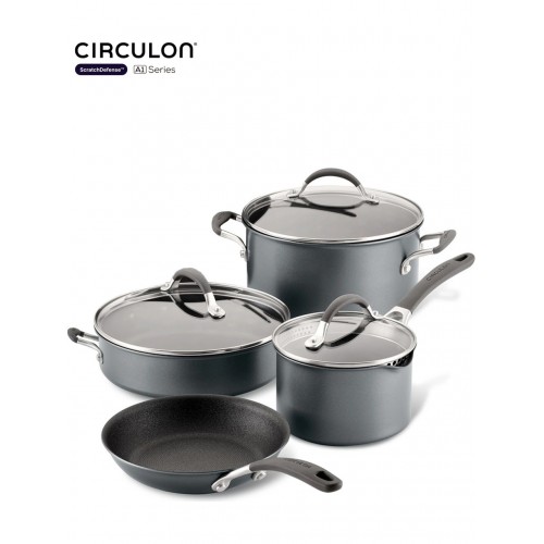 Kalın ve 3x katlı yapışmaz kaplamalı pişirme kaplarının mucitlerinden Circulon, ScratchDefense Teknolojisine sahip A1 Serisi ile mutfağınıza yenilik getiriyor. Havacılık sınıfı dayanıklılık sağlayan ScratchDefense teknolojisi; çizilmeyi, yapışmayı ve aşınmayı ortadan kaldırarak, üç katmanlı yapışmaz pişirme yüzeyiyle rakiplerinden 130x kat daha uzun ömür sunuyor. 200+ yıldan fazla günlük aşınma ve yıpranmanın simüle edildiği laboratuvar testlerine dayanan son teknoloji ürünlerimiz ömür boyu çizilmezlik sunuyor. Bulaşık makinesinde güvenle ve kolayca yıkanabilecek pişiricilerimiz mutfağınızın günlük rutinine kolaylık katıyor. Ultra yapışmaz yüzeyi, kolayca silinerek temizlenebiliyor. Döküm gövde üzerine uygulanmış ScratchDefense kaplama malzemesi, hızlı ve her noktaya eşit ısı dağılımı sağlerken; kalın ve indüksiyona uygun paslanmaz çelik tabanı, dayanıklılığını ve ısı transferini arttırıyor. Yapışmaz pişirme kaplarımızın fırına dayanıklı çok yönlülüğü, Circulon müşterileri tarafından en çok beğenilen özelliklerden biridir. ScratchDefense tencere ve tavalar, çoğu tarif ve günlük pişirme için yeterli olan 200 º 'ye kadar fırına dayanıklıdır. Dayanıklı yüzey yapısıyla birlikte, A1 Serisi tamamen fırına dayanıklı çift perçinli silikon kulplarla tasarlanmıştır.